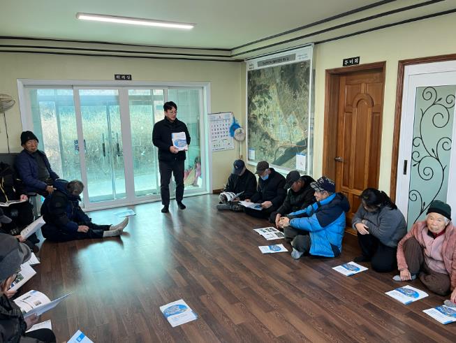 | ▲ 마을단위 LPG 소형저장탱크 보급사업 설명을 듣고 있는 청남면 중산리 마을 주민들의 모습 |
