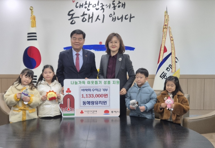 [뉴스앤톡] 동해랑유치원(원장 이은주)은 최근 원내에서 개최한 바자회 수익금 1,133,000원을 어려운 이웃을 위해 사용해 달라며 동해시에 기탁했다.