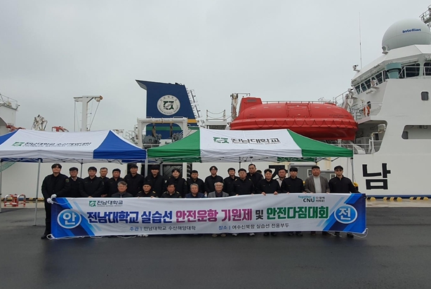 [뉴스앤톡] 전남대학교 수산해양대학(학장 서호영)은 지난 24일 여수 신북항에서 선박실습센터 및 실습선 교직원들이 참석한 가운데, 실습선의 안전 운항과 승선자의 무사 안녕을 다짐하는 ‘전남대학교 실습선 안전기원제 및 안전 다짐 대회’를 개최했다.