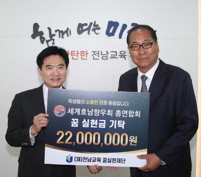 [뉴스앤톡] 전남교육 꿈실현재단은 지난 1일 세계호남향우회 총연합회가 ‘전남 의(義) 실천 꿈 실현금’ 2,200만원을 기탁했다고 밝혔다.
