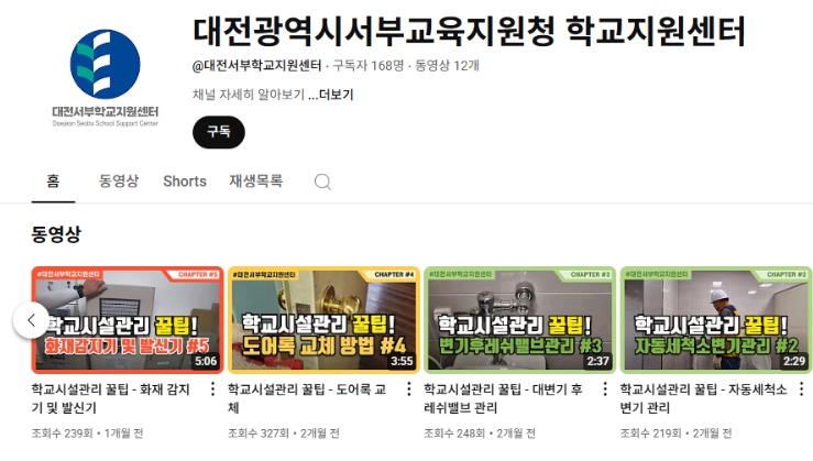 [뉴스앤톡] 대전서부교육지원청은 학교 시설관리의 전문성과 효율성을 높이기 위해 학교지원센터 시설관리 주무관의 노하우가 담긴 교육 영상을 유튜브를 통해 제공한다고 밝혔다.