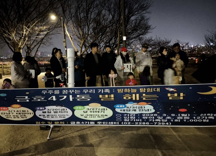[뉴스앤톡] 서울 성동구 금호4가동에서는 지난 3월 14일부터 4월 3일까지 총 4회에 걸쳐 진행된 주민참여예산 사업 '별 헤는 밤' 프로그램이 주민들의 뜨거운 호응 속에 성공적으로 마쳤다고 밝혔다.