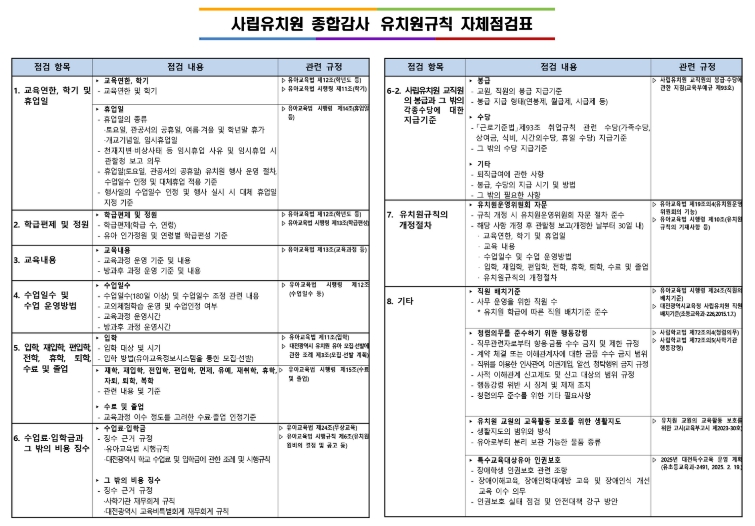 ▲ 사립유치원 종합감사 유치원규칙 자체점검표
