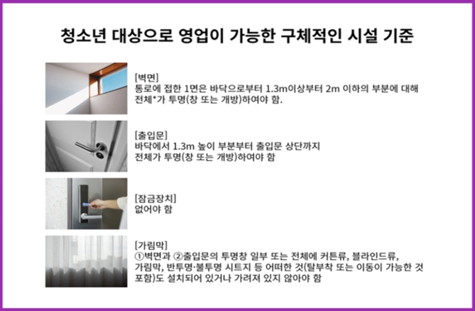 ▲ 시설 기준(청소년 출입·고용금지업소 결정 고시)(2023-25호 요약/출처: 성평등가족부 블로그)