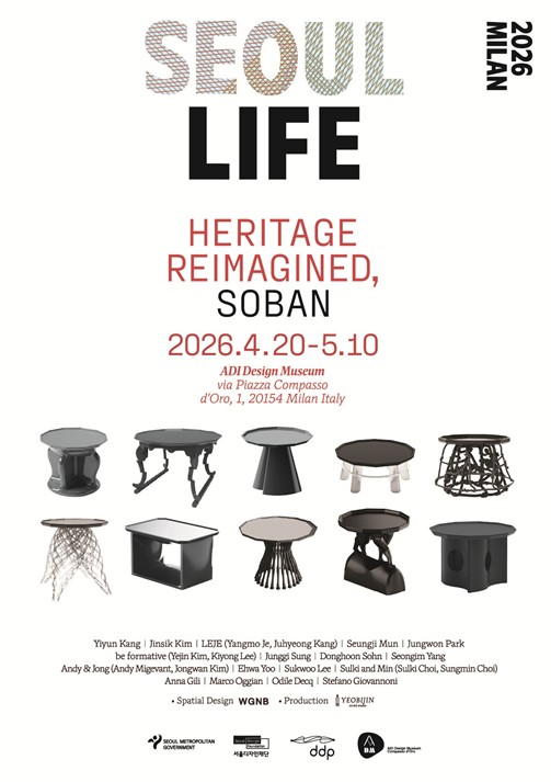 서울디자인재단은 2026년 4월 20일부터 5월 10일까지 이탈리아 ADI 디자인뮤지엄에서 국제 전시 'SEOUL LIFE 2026 MILAN: Heritage Reimagined, Soban'을 개최한다.