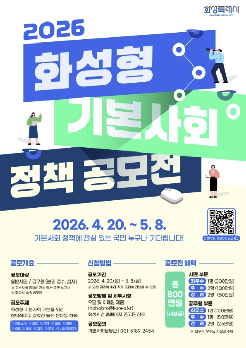 [뉴스앤톡] 화성특례시는 시민 참여 기반을 확대하고, 실효성 있는 기본사회 정책을 발굴하기 위해 '2026년 화성형 기본사회 정책 공모전'을 개최한다고 밝혔다.