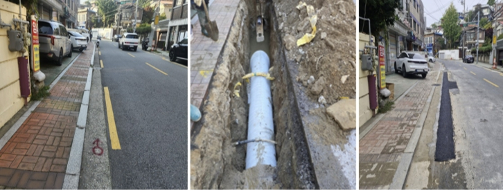 | ▲ 서대문구의 노후 하수관로 정비 사업 전·중·후(왼쪽부터) 모습 예시 |