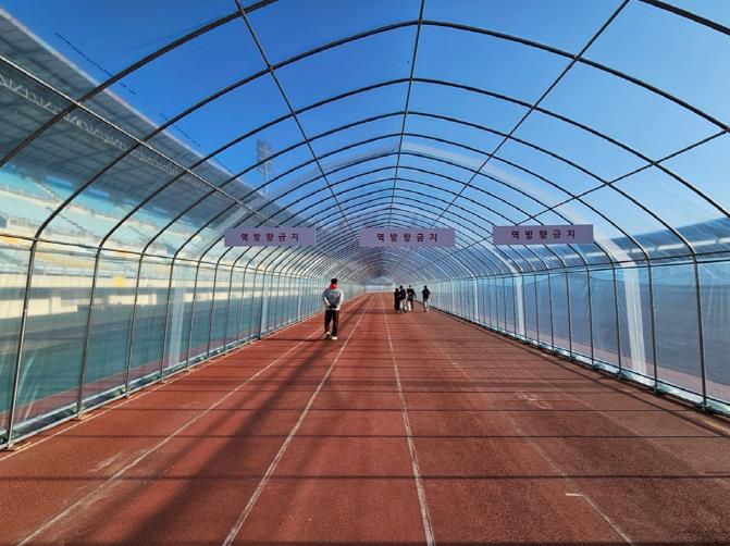 비닐트랙은 종합운동장 주경기장 내 400m 육상트랙 구간에 비닐하우스 형태로 설치돼 외부 기온과 날씨에 관계없이 이용이 가능하다.