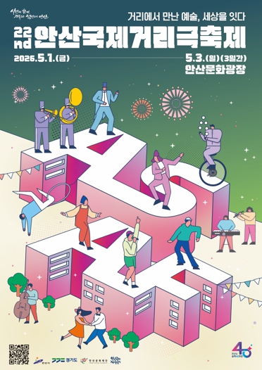 [뉴스앤톡] 안산시와 안산문화재단이 오는 5월 1일부터 3일까지 안산문화광장에서 개최되는 ‘2026 제22회 안산국제거리극축제’의 공식 슬로건과 포스터, 그리고 공연 프로그램을 전격 공개했다.