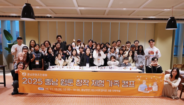 [뉴스앤톡] 충남콘텐츠진흥원은 11월 8일(서산)과 15일(천안) 두 차례에 걸쳐 개최한 ‘2025 충남 웹툰 창작체험 가족 캠프’를 성황리에 마무리했다고 밝혔다.