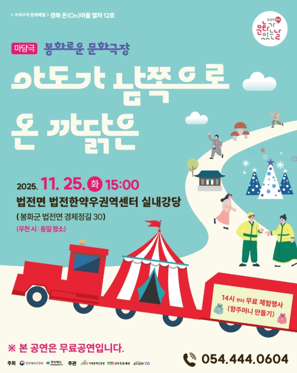 [뉴스앤톡] (사)문화창작집단 공터다(대표 : 황윤동)는 문화체육관광부와 경상북도가 주최하고 경북문화재단, 지역문화진흥원이 주관하는 2025년 문화가 있는 날 '봉화로운 문화극장' 사업을 진행한다.