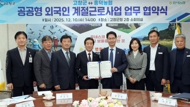 [뉴스앤톡] 고창군과 흥덕농협이 지난 10일 2027년 공공형 계절근로사업 추진을 위한 업무협약(MOU)을 체결했다.