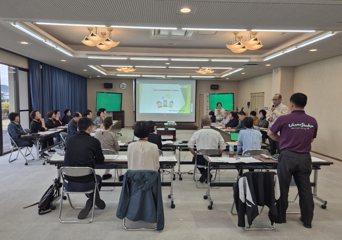 | ▲ 강진군 직원들이 일본 운난시 지역포괄케어센터에서 지역포괄케어 시스템에 대하여 설명을 듣고 있다. |