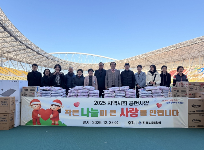 [뉴스앤톡] 진주시체육회(회장 김택세)는 12월 3일 지역사회 나눔과 공동체 가치 실현을 위해 “2025 진주시체육회 지역사회 공헌사업을”을 통해 따뜻한 지역사회 조성에 앞장섰다.