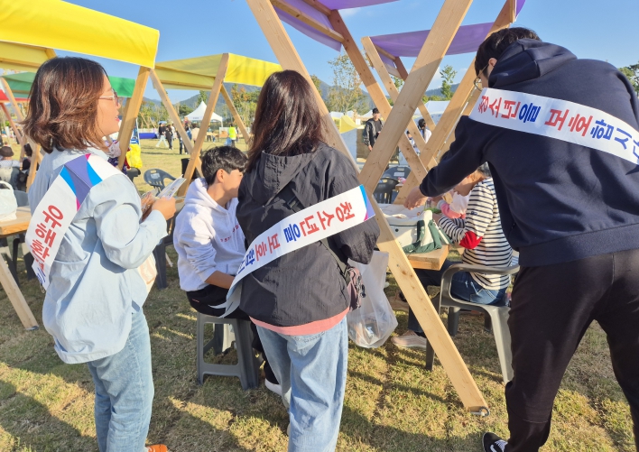 | ▲ 강진군이 강진만 춤추는 갈대축제장에서 아동학대 예방 및 청소년 유해환경 개선 캠페인을 진행했다. |