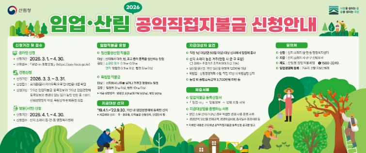 자세한 사항은 산지 소재지 시군 산림부서나 읍면동 행정복지센터, 산림청 임업직불금 상담센터를 통해 확인할 수 있다.