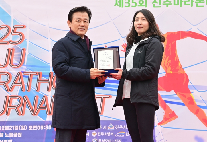 개회식에서는 마라톤 종목의 발전과 생활체육 활성화에 기여한 공로로 우유라 진주마라톤조직위원회 위원에게 진주시장 감사패를 수여했다.