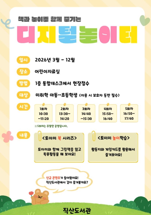 디지털 놀이터는 미취학 아동부터 초등학생까지 이용 가능하며, 선착순으로 현장 접수하면 된다.