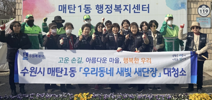 | ▲ 수원시 영통구 매탄1동 '새빛 새단장'…새봄맞이 대청소·초화 식재 활동 전개 |