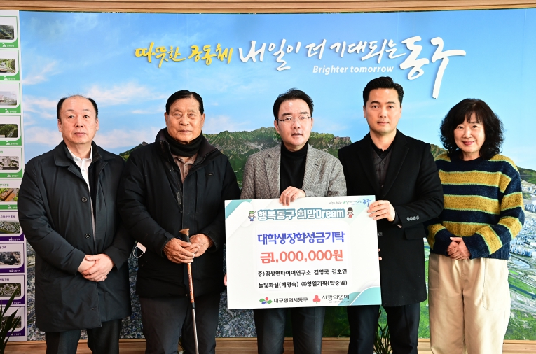 [뉴스앤톡] 김상연타이어연구소(대표 김상연), 영일기획(대표 박중일), 놀빛화실(대표 배영숙)은 지난 22일, 동구청을 방문해 지역 내 어려움을 겪고 있는 저소득 대학생을 위해 장학 성금 100만원을 기탁했다.