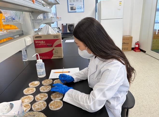 | ▲ 신안군농업기술센터 자가채종 종자 발아율 검사하고 있다. |
