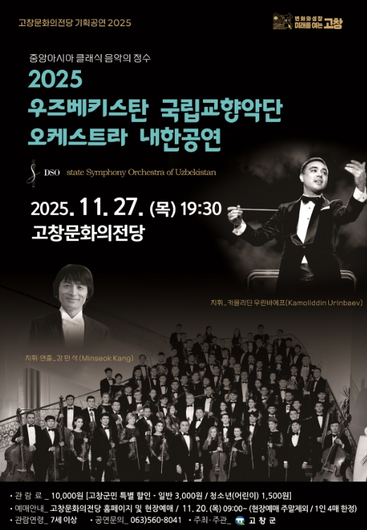 [뉴스앤톡] 오는 27일 저녁 7시30분 고창문화의전당에서 ‘우즈베키스탄 국립교향악단 오케스트라 내한공연’이 진행된다.