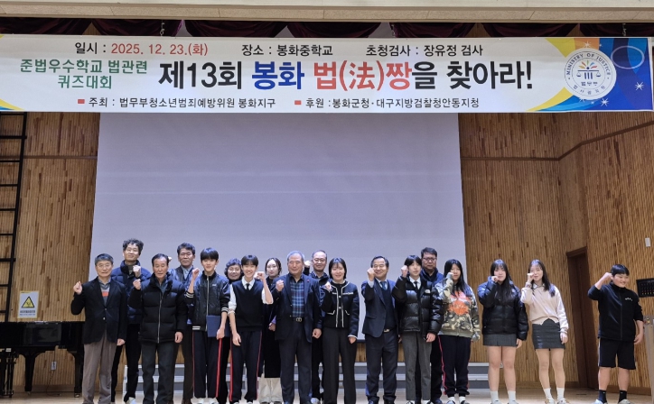 [뉴스앤톡] 봉화군에는 지난 23일 법무부 청소년범죄예방위원 봉화지구협의회가 주최하는 2025년 준법우수학교 퀴즈대회‘제13회 봉화 법(法)짱을 찾아라’가 봉화중학교 대강당에서 성황리에 개최됐다.