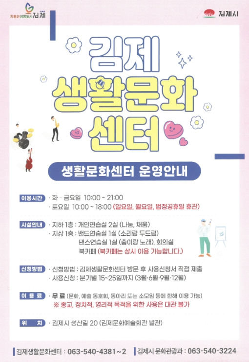 | ▲ 김제시, 생활문화센터 2분기 이용자 모집 |
