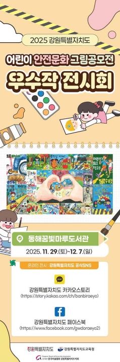 [뉴스앤톡] 동해꿈빛마루도서관은 강원특별자치도가 주관한 ‘2025년 어린이 안전문화 그림 공모전’에서 입상한 우수작품 전시회를 개최한다.