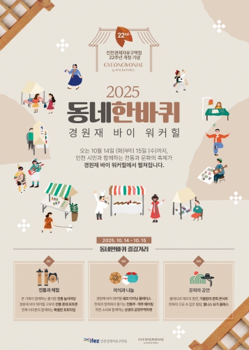 [뉴스앤톡] 인천경제자유구역청은 오는 14일과 15일 이틀간 경원재 한옥호텔에서 제2회 경원재 시민페스티벌 ‘2025 동네한바퀴 경원재바이워커힐’을 개최한다고 밝혔다.