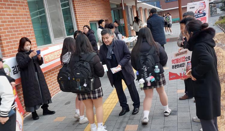 이어 지난 7일 금성중학교에서도 정성주 김제시장과 소상공인협회 위원들이 적극 참여한 가운데 학생들 대상 홍보 캠페인을 진행했다.