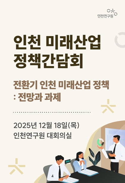 [뉴스앤톡] 인천연구원은 2025년 12월 18일 오전 10시, 인천연구원 대회의실에서 '인천 미래산업 정책간담회'를 개최한다.