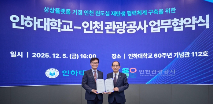 공사는 그동안 상상플랫폼을 인천 원도심 재생과 관광 활성화의 주요 추진 거점으로 활용해 왔다. 이번 협약을 계기로 인하대학교와 함께 문화·관광 콘텐츠 공동 개발, 원도심 가치 회복을 위한 실증·연구 협력, 지역 청년의 활동 기회 확대 등 다양한 분야에서 협력할 계획이다.