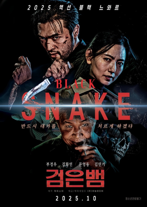 개봉 확정과 함께 포스터를 공개한 하드보일드 액션 느와르 '검은뱀'은 오는 10월 전국 극장에서 개봉해 관객들을 만날 예정이다.