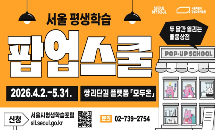 [뉴스앤톡] 서울시는 4월 2일 도봉구 쌍문역 인근 시민 오픈 커뮤니티 공간 ‘모두온’에 ‘서울 평생학습 팝업스쿨’을 개관하고 약 2개월간 시범 운영한다고 밝혔다. 이번 사업은 역세권 생활권 내에서 학습이 이뤄지는 새로운 평생학습 모델로, 4월~5월까지 정규강좌와 명사특강 등 총 20개 프로그램을 운영하며 약 1천 명이 참여할 예정이다.
