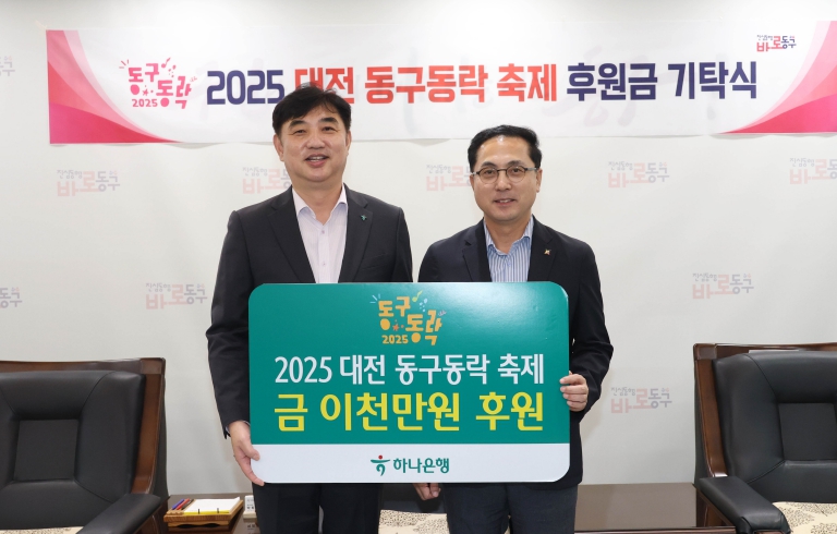 [뉴스앤톡] 대전 동구는 지난 13일 구청장 접견실에서 ‘2025 대전 동구동락 축제’의 성공적인 개최를 위한 후원금 기탁식을 개최했다고 밝혔다.