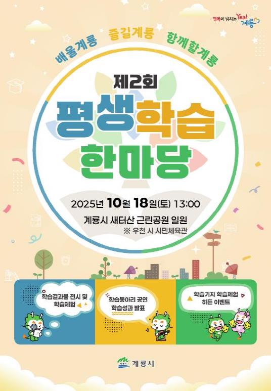 [뉴스앤톡] 계룡시는 오는 18일 오후 1시부터 시청 앞 새터산 근린공원에서 시민이 주도하는 배움의 축제 “2025 제2회 계룡시 평생학습 한마당”을 개최한다고 밝혔다.