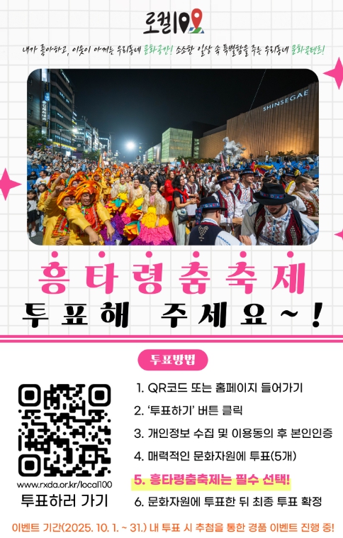 [뉴스앤톡] 천안시는 문화체육관광부와 지역문화진흥원 주관의 ‘제2기 로컬100’ 선정 온라인 국민투표에 천안흥타령춤축제가 천안지역 단일 후보로 선정되며 문화 경쟁력을 다시 한번 입증했다고 21일 밝혔다.