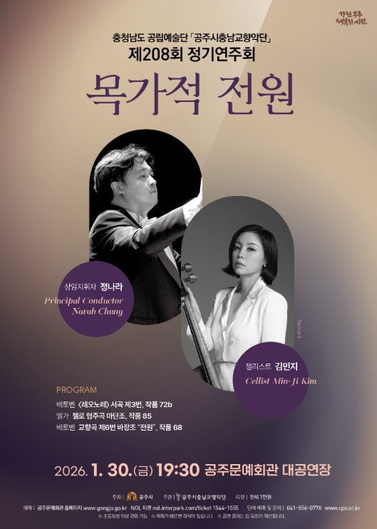 [뉴스앤톡] 충청남도 공립예술단 공주시충남교향악단은 오는 1월 30일19시 30분, 공주문예회관 대공연장에서 ‘목가적 전원’을 부제로 2026년 시즌의 첫 정기공연의 문을 연다.