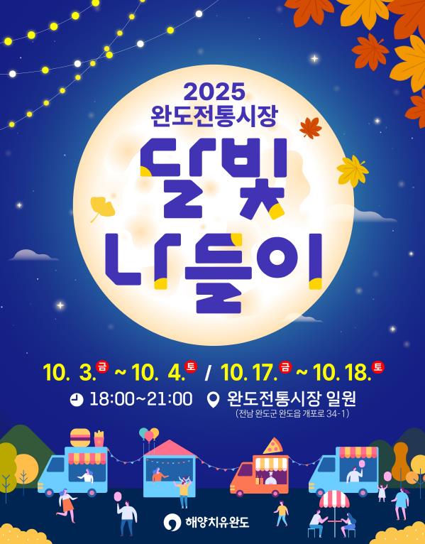 [뉴스앤톡] 완도군은 10월 첫째, 셋째 주 금·토요일 오후 6시부터 9시까지 총 4회에 걸쳐 완도전통시장에서 ‘달빛 나들이’ 행사를 개최한다.