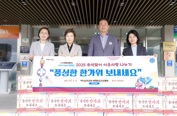 [뉴스앤톡] 하나님의교회세계복음선교협회(총회장 김주철)는 추석 명절을 맞아 9월 16일 홍천군청에 방문하여 2025 추석맞이 이웃사랑 나누기 식료품 20세트(총 80~100만 원 상당)를 전달했다.