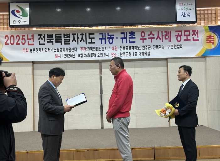 [뉴스앤톡] 고창군 귀농인인 오세훈씨(57)가 지난 24일 열린 ‘2025 전북 귀농귀촌 우수사례 공모전’에서 우수상을 수상했다.