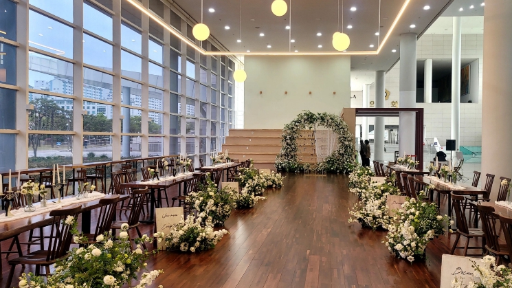 또 구내식당을 활용한 간편 식사(국수 1인 5000원) 제공으로 피로연 비용을 절감할 수 있으며, 야외 케이터링도 가능하다. 기상 상황에 따라 실내 공간으로 전환할 수 있는 대응체계도 갖췄다.