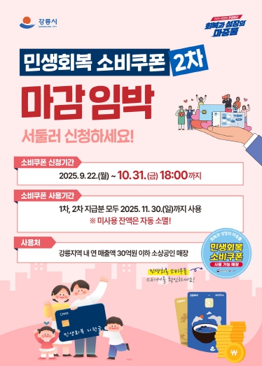 [뉴스앤톡] 강릉시가 민생회복 소비쿠폰 2차 신청 마감일인 10월 31일을 앞두고, 아직 신청하지 않은 시민들을 대상으로 신청 독려에 나선다.