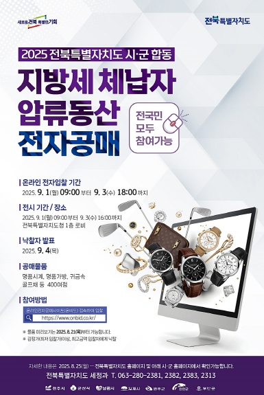김종필 전북특별자치도 자치행정국장은 “이번 전북도의 공매는 전국 최초로 온비드 이용기관 플랫폼을 활용한 합법적 전자공매 사례로, 지방세 행정의 새 기준을 세웠다”며, “앞으로도 새로운 징수기법을 적극 개발하고, 성실 납세 문화 확산과 공정한 조세 질서 확립에 최선을 다하겠다”고 밝혔다.