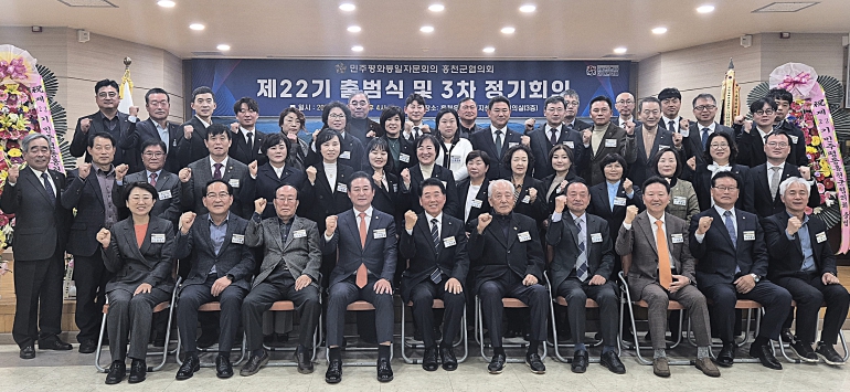 [뉴스앤톡] 홍천군은 11월 14일, 홍천읍행정복지센터 3층 대회의실에서 ‘민주평화통일자문회의 홍천군협의회 제22기 출범식 및 제3차 정기회의’를 개최했다. 이번 출범식에는 신영재 홍천군수, 제22기 자문위원, 역대 회장 등 50여 명이 참석했다.