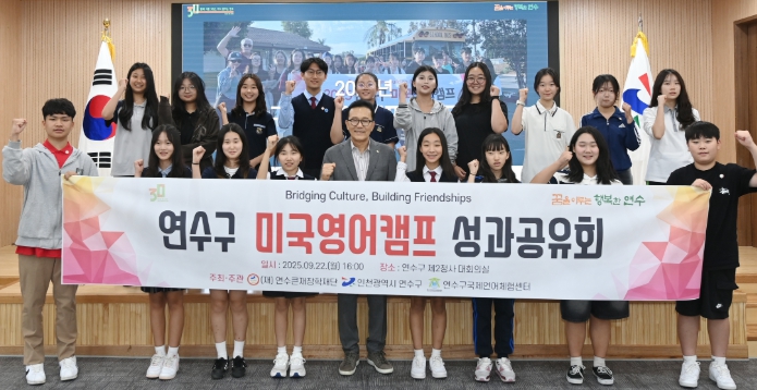 [뉴스앤톡] 연수구는 지난 22일 연수구 제2청사에서 ‘연수구 미국영어캠프’ 성과공유회를 개최해 참가 장학생들의 학습 성과와 글로벌 경험을 함께 나누는 자리를 마련했다.