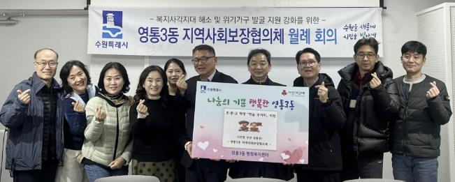 한편 영통3동은 앞으로도 민관 협력을 통해 복지 사각지대를 적극 발굴하고, 주민들의 삶의 질 향상을 위한 다양한 맞춤형 복지사업을 지속적으로 추진해 나갈 계획이다.