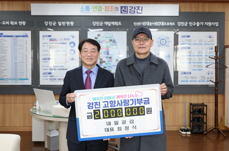 [뉴스앤톡] 최정식 내일공감 대표가 지역 발전을 염원하는 따뜻한 마음을 담아 강진 고향사랑기부제에 동참하며 나눔 문화 확산에 앞장섰다.