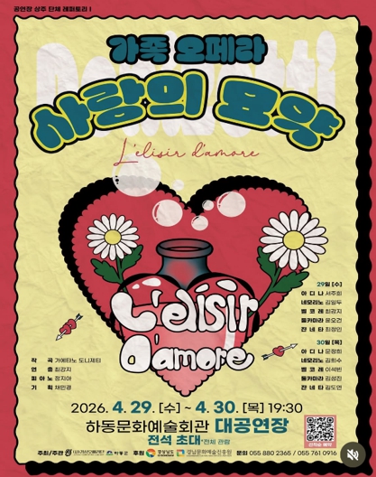 [뉴스앤톡] 하동군이 오는 4월 29일·30일 오후 7시 30분, 하동문화예술회관에서 사단법인 경상오페라단의 가족오페라 ‘사랑의 묘약’을 선보인다.